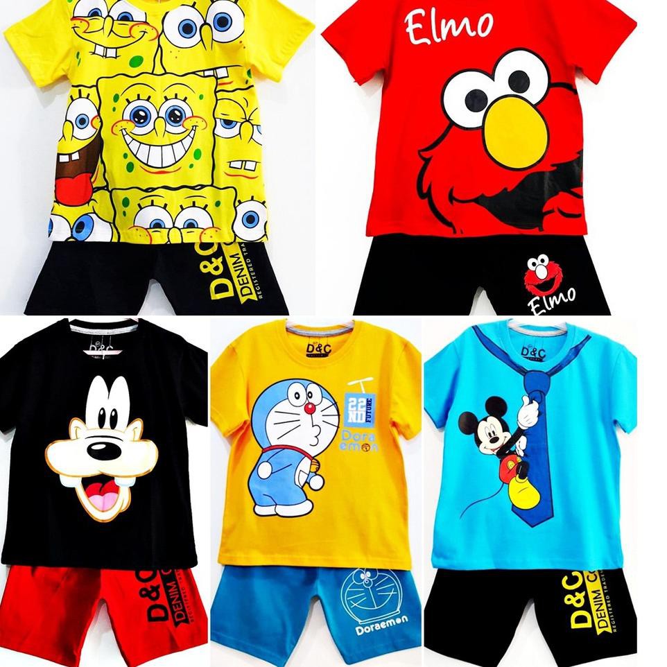 Setelan Baju Anak Cowok Umur 1 2 3 4 5 6 7 8 9 10 Tahun Motif Elmo Red Doraemon Spongebob Shopee Indonesia