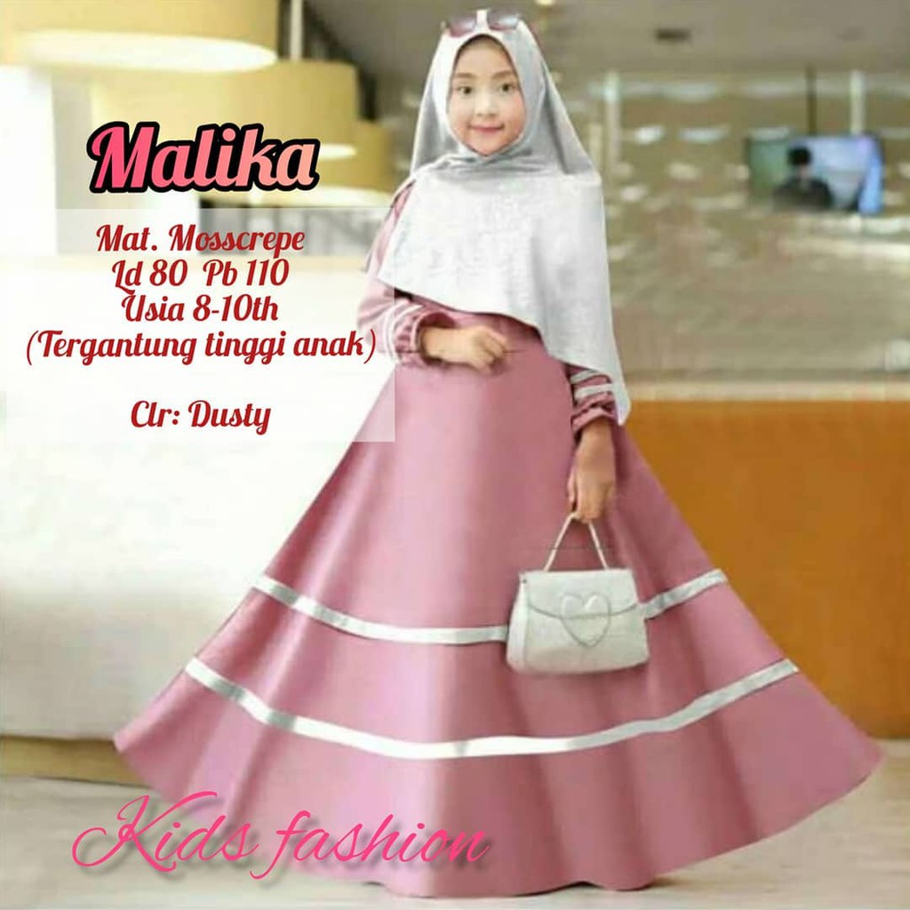 Malika Kids Bo Gamis Anak Perempuan Baju Muslim Anak Terbaru 2020 Umur 8 10 Tahun Dapat Khimar Shopee Indonesia