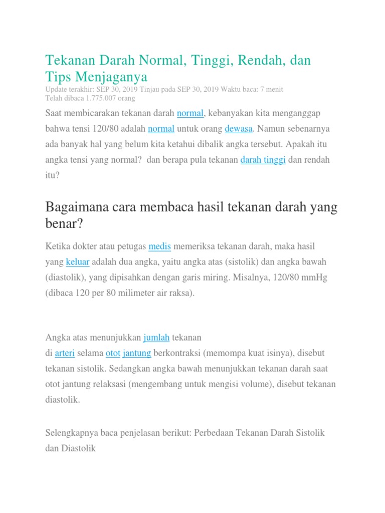 Tekanan Darah Kapan Bisa Dikatakan Normal Dan Tidak Normal
